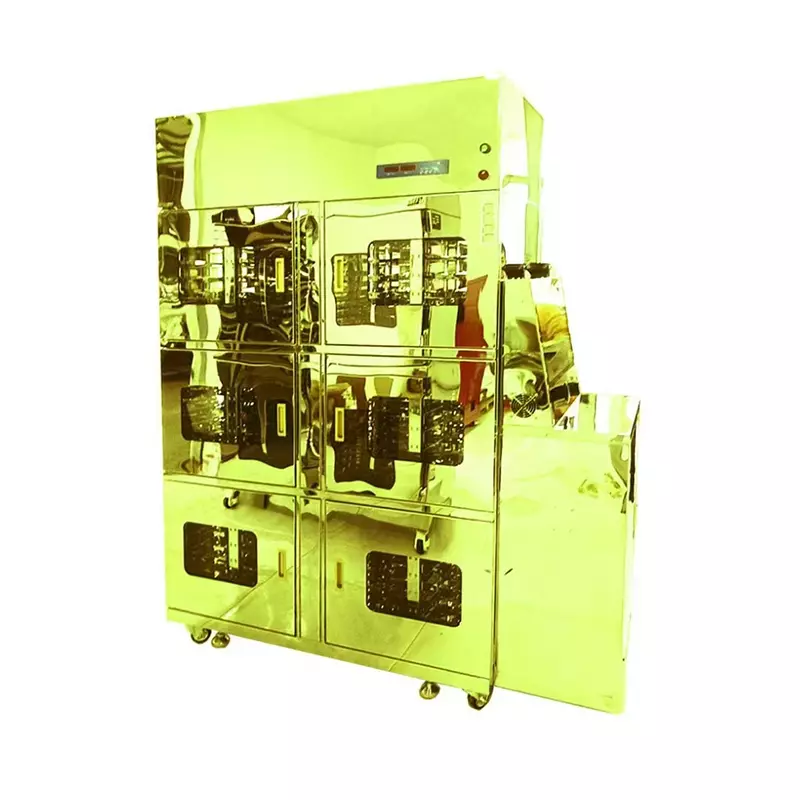 Cabinet structure: The cabinet body is made of 1.2mm thick cold-rolled steel plate or stainless steel with high strength, featuring good stability. It is equipped with pressure-absorbing shock-absorbing rubber strips for excellent sealing performance. The cabinet door is fitted with an ultra-thick visible tempered glass window, and the bottom is equipped with anti-static universal brake wheels.